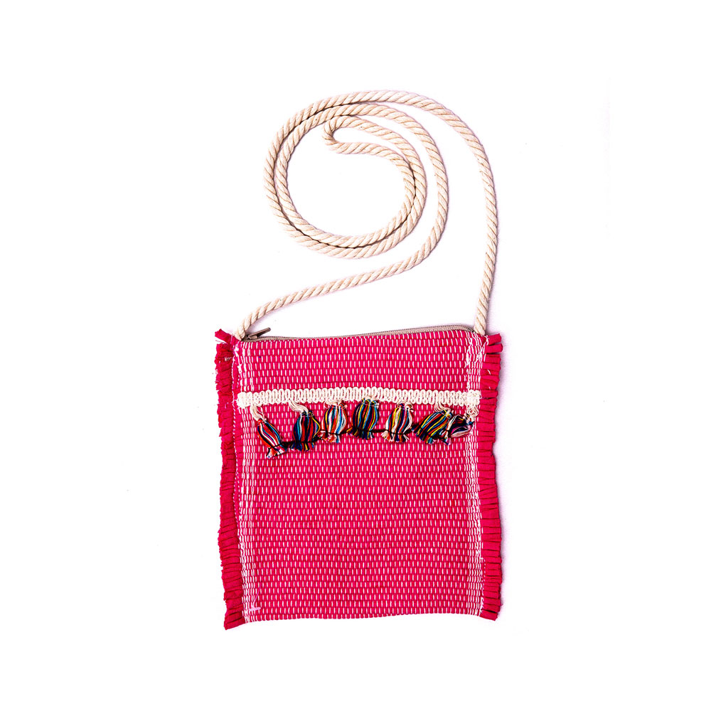Πρακτικό τσαντάκι χιαστί από κουρελού σε χρώμα κόκκινο. Εσωτερική επένδυση με βαμβακερό υφασμα. Κλείνει με φερμουαρ για να ασφαλίσετε κλειδιά, κινητό και πορτοφόλι. Χειροποίητο από Αργαστήρι Καλύμνου σε παραδοσιακό αργαλειό.